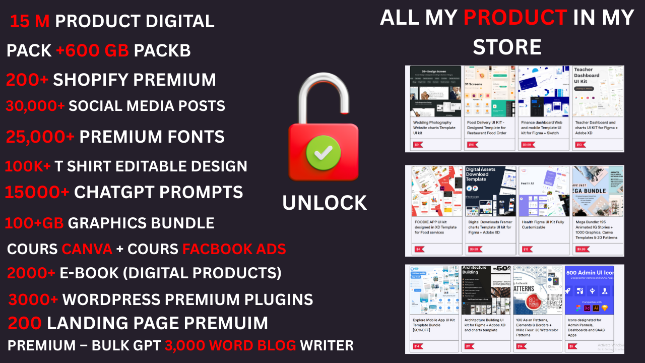Unlock the ultimate shortcut with our Big Digital Products Bundle — packed with 15M+ premium assets! From WordPress plugins, Shopify templates, AI tools, courses, graphics, social media templates, and more. Ready-made, high-value products that you can use, customize, or resell — keeping 100% of the profits!
